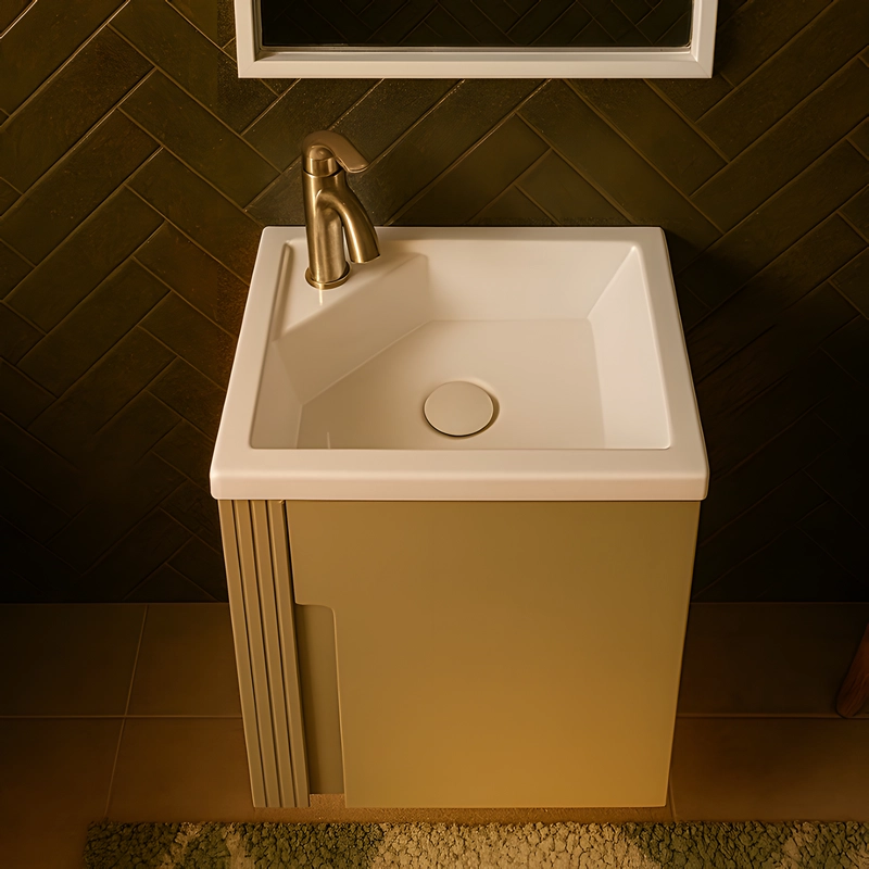 - کابینت روشویی معلق: کابینت به صورت دیواری و معلق نصب میشود، که علاوه بر زیبایی ظاهری، به ایجاد حس وسعت و تمیز کردن آسانتر کف حمام کمک میکند. محفظه داخلی کابینت، فضای وسیعی برای سازماندهی لوازم ضروری شما فراهم میآورد.