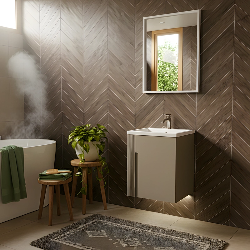- بدنه کاملاً ضد آب: ساخته شده از ورق PVC 16 میلیمتری با بالاترین دانسیته برای مقاومت مطلق در برابر رطوبت و بخار، که آن را برای محیط حمام ایدهآل میسازد.
